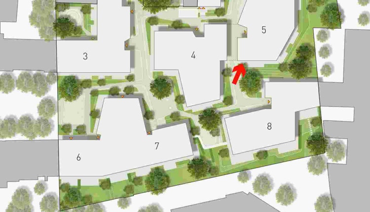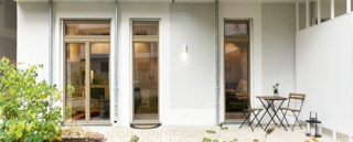 Ihr Appartement befindet sich im Erdgeschoss und ist barrierefrei von der Erdgeschossebene und auch direkt von der Tiefgarage zugänglich. Im Erdgeschoss vom Vorderhaus gibt es einen Service-Point, der einen Concierge-Service bietet. Dort werden Pakete angenommen und Besucher empfangen.