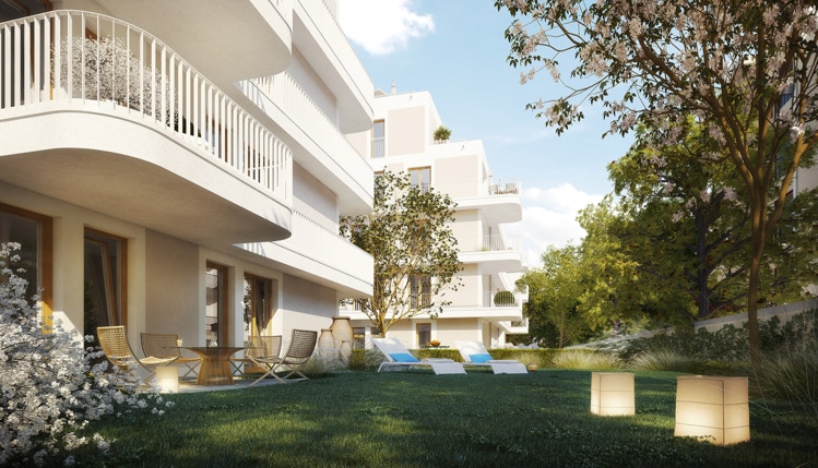 Zum Appartement gehört eine 11,5 qm große Terrasse zur privaten Nutzung. In der gesamten Wohnanlage stehen ca. 2 570 Quadratmeter allgemein verfügbare Wege-, Grün- und Freiflächen zur Verfügung.